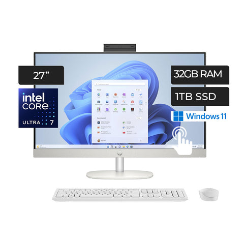 HP 27 All -in -1 Intel Core Ultra 7 155u 32GB Ram 1TB SSD Full HD Touch Screen Win11 Home Wireless Key Mouse Shell White